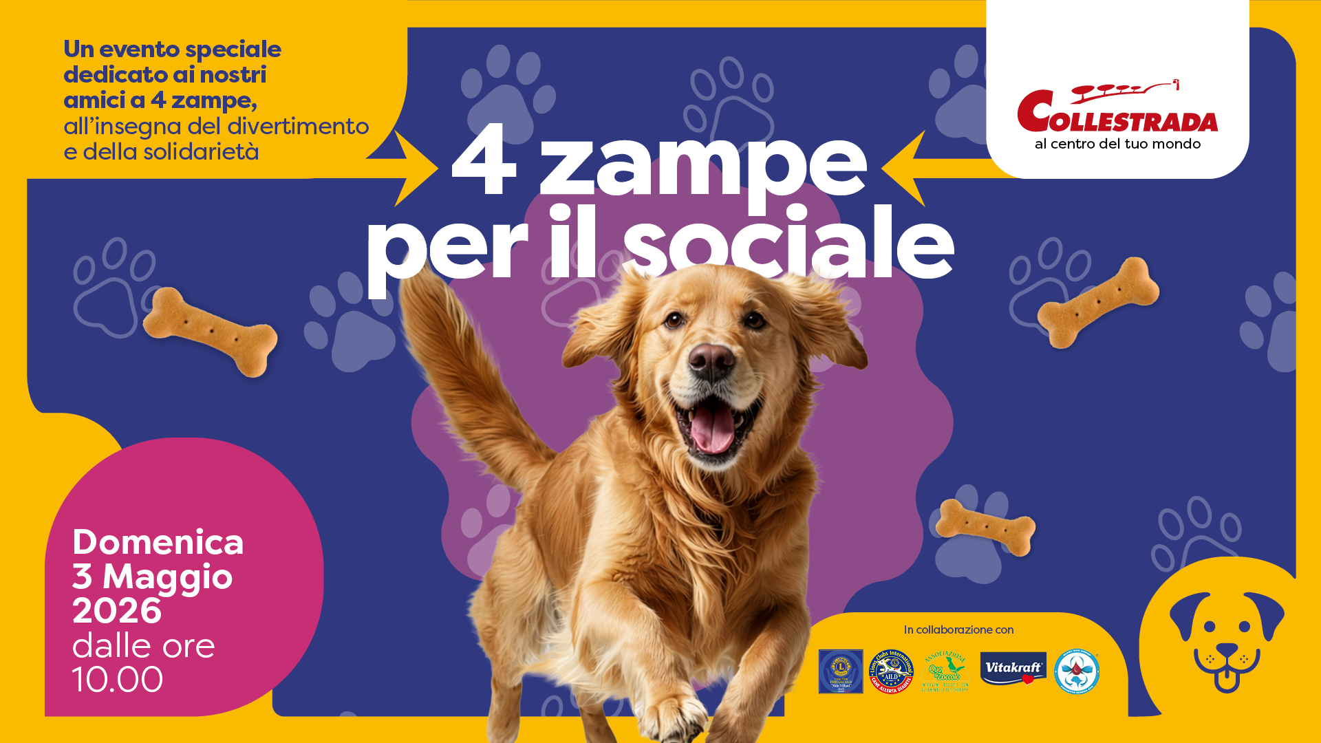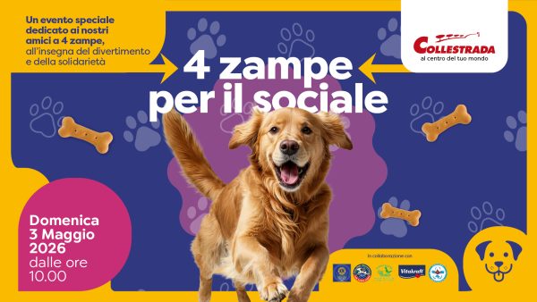 Domenica 3 maggio dalle ore 10 Collestrada si trasforma in uno spazio di incontro, gioco e solidarietà con “4 Zampe per il Sociale”,