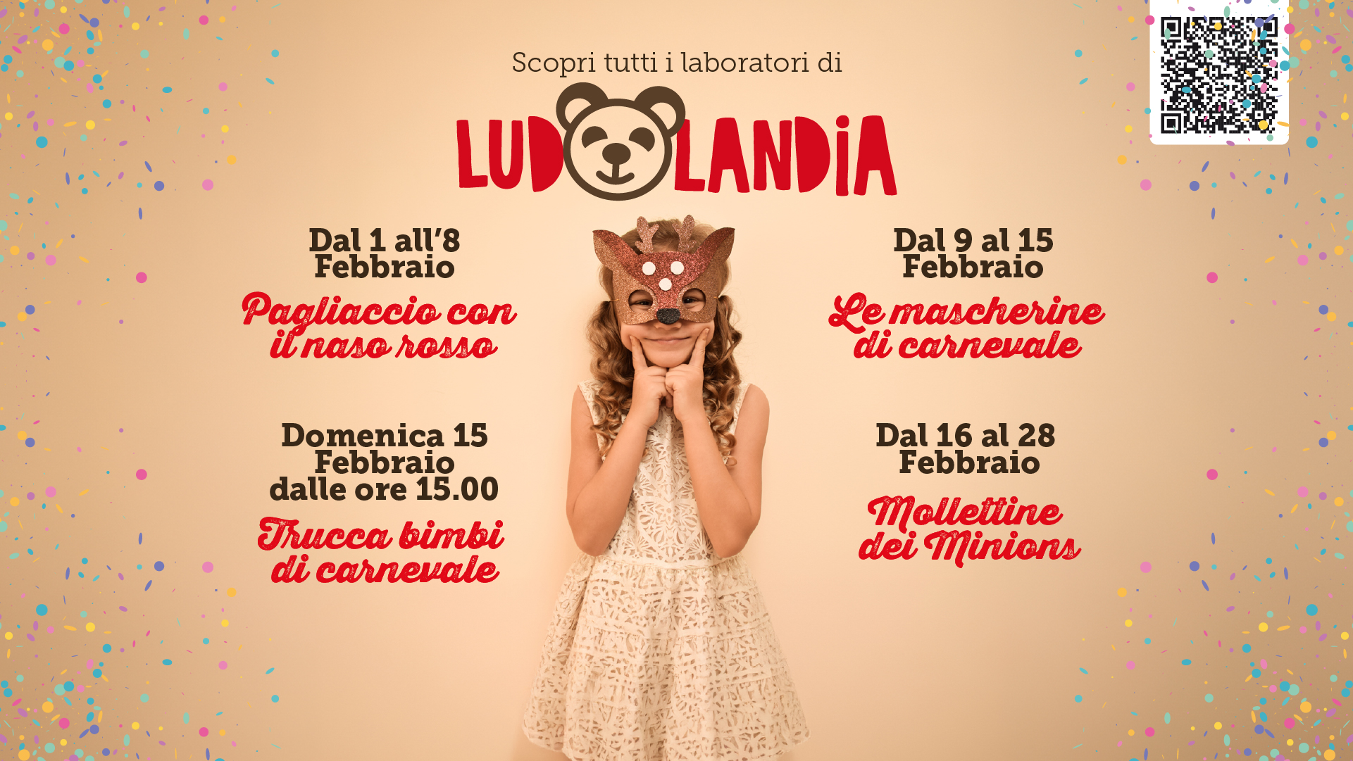 Domenica 15 febbraio dalle ore 15:00 trucca bimbi di carnevale